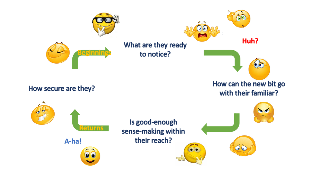 The diagrams below depict a model of learning, first from the perspective of the learner, then from the perspective of the teacher.
